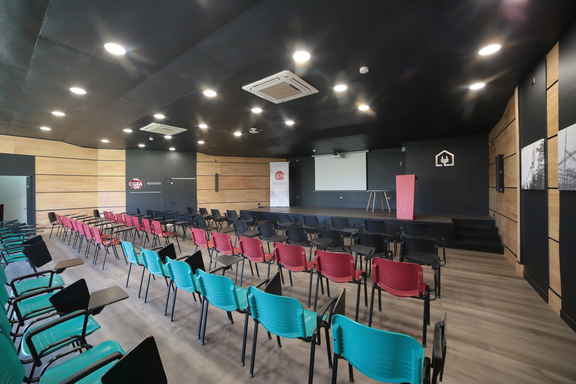 Está diseñado para efectuar conferencias, diversas modalidades formativas (Curso, Taller, Charla) y eventos corporativos de mayor envergadura, con capacidad para alojar cómodamente a un número significativo de participantes. Equipado con tecnología de punta, el auditorio ofrece un entorno ideal para la transmisión efectiva de conocimientos, competencias y la interacción entre expositores y audiencia.
