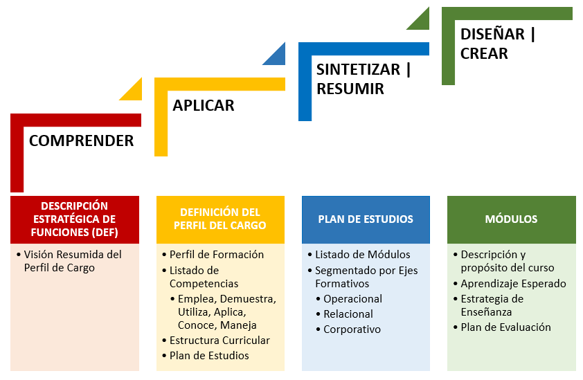 La Taxonomía del Aprendizaje, corresponde a un marco metodológico que permite clasificar y organizar los objetivos de aprendizaje de manera progresiva, desde niveles básicos de conocimiento hasta niveles superiores de aplicación, análisis y toma de decisiones. Su aplicación en los planes de estudio por cargo, facilita la estructuración de los contenidos formativos, asegurando que el aprendizaje sea gradual, medible y orientado al desempeño efectivo en el puesto de trabajo, fortaleciendo tanto la competencia técnica como la seguridad operacional.